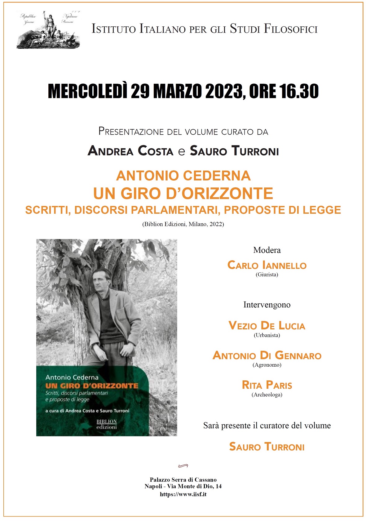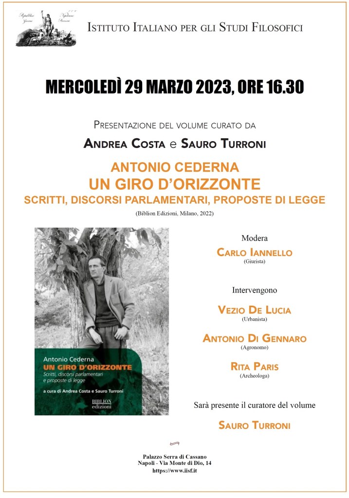 Si inizia il 29 marzo, all’Istituto Italiano per gli Studi Filosofici, con la presentazione del libro importante nel quale Andrea Costa e Sauro Turroni hanno racconto gli scritti, i discorsi parlamentari, le proposte di legge di Antonio Cederna (“Antonio Cederna, un giro d’orizzonte”, Biblion edizioni).