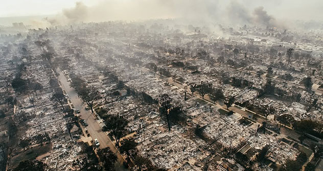 Il bilancio per la città californiana è tra i più pesanti di sempre: 27 persone decedute, 15.500 ettari bruciati, 90.000 abitanti evacuati, 12.000 edifici distrutti, per un danno stimato intorno ai 150 miliardi di dollari.