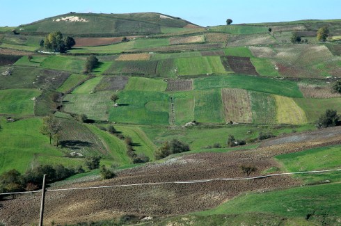 Visto da qui il tratturo è una striscia verde d’erba che si srotola tra i campi, sembrerebbe il segno più tenue nel paesaggio, e invece è il più tenace, c’era già duemilacinquecento anni fa, prima che iniziasse la costruzione dell’Appia antica. Davanti compare Zungoli, nel vento della sua collina, tutt’intorno si stende il mare di argille ondulate, dall’Alta Irpinia all’Ufita al Fortore, le terre estreme della Campania, quelle più povere d’uomini. In queste aree la densità demografica tocca i minimi – 53 persone per chilometro quadrato, la media regionale è 426, nella fascia costiera sono più di 2.600 – che è come se gli abitanti di Chiaia–Posillipo si distribuissero, da soli, in un’area grande una volta e mezzo la provincia di Napoli. La demografia è un bollettino di guerra, nell’ultimo cinquantennio l’Alta Irpinia ha perso il 43% degli abitanti, l’Ufita addirittura il 46, il Fortore il 34; alla fine, 66.000 persone sono andate via, ed è una tendenza inarrestabile, che non conosce pause.