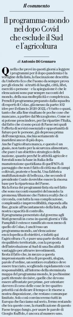 Antonio di Gennaro, Repubblica Napoli del 30 ottobre 2020